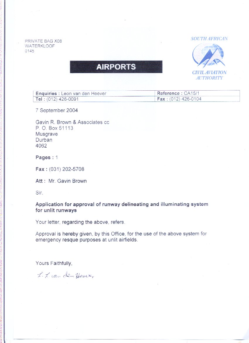 | · South African Civil Aviation Authority Approval |